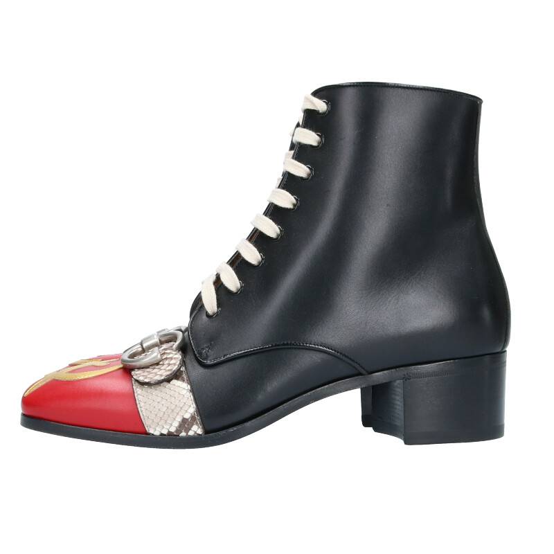 グッチ/GUCCI 【17AW】【483937】ピアスドムーン付レザーブーツ(7/ブラック×レッド×シルバー)【BS99】【メンズ】【小物】【014002】【中古】bb15#rinkan*A